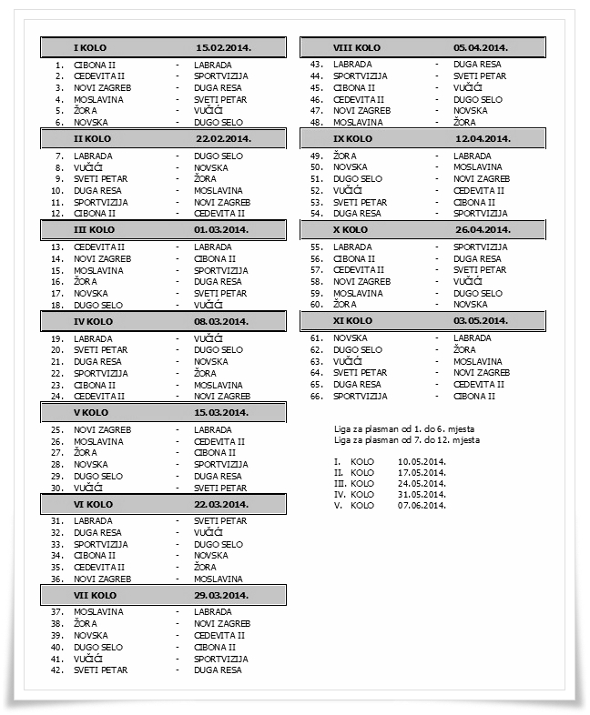 • HRLC II. liga 2014. drugi dio
